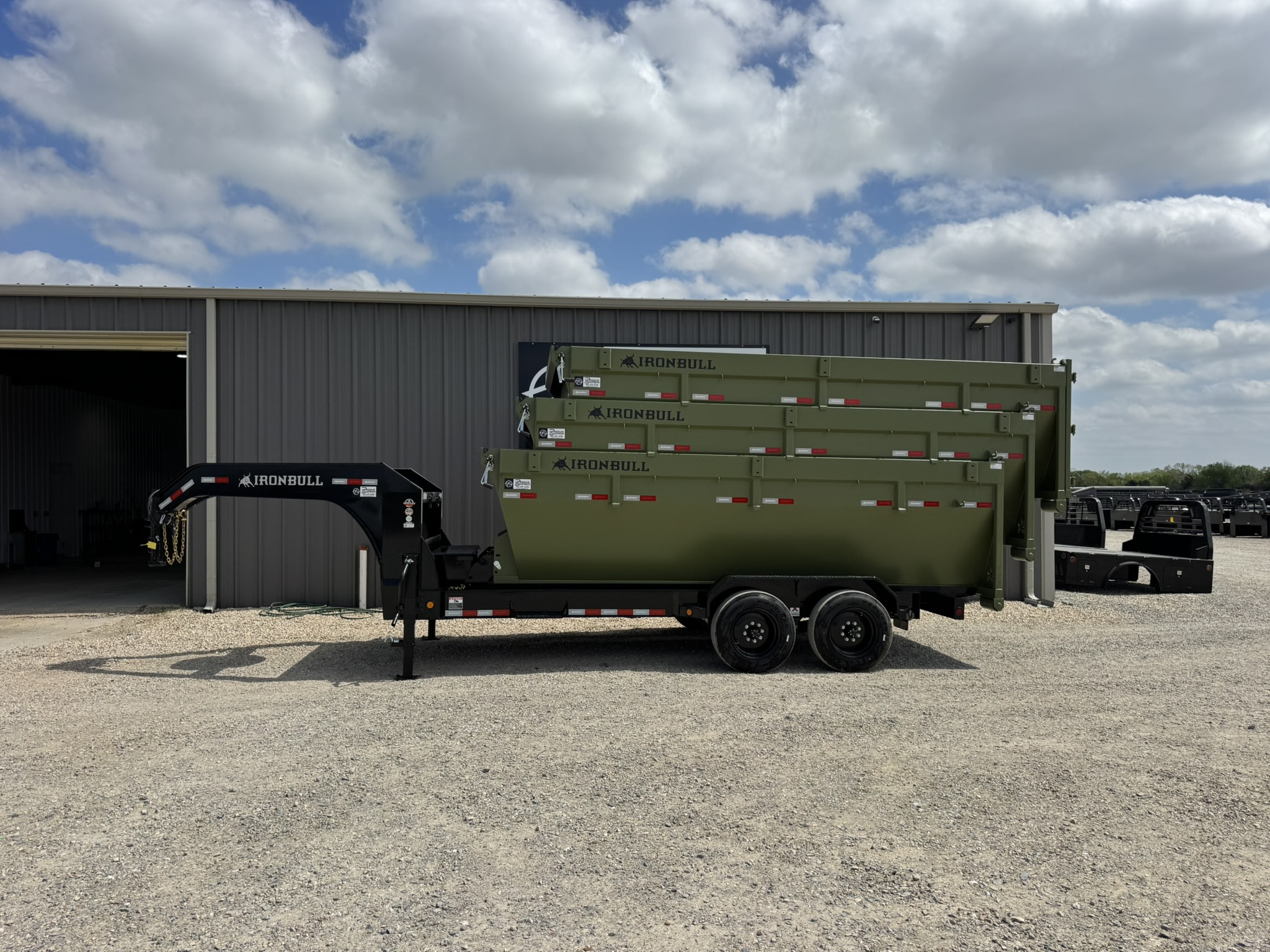 Iron Bull 83"x16' DBG 16k Roll Off Dump Gooseneck Trailer Package with 3 Bins